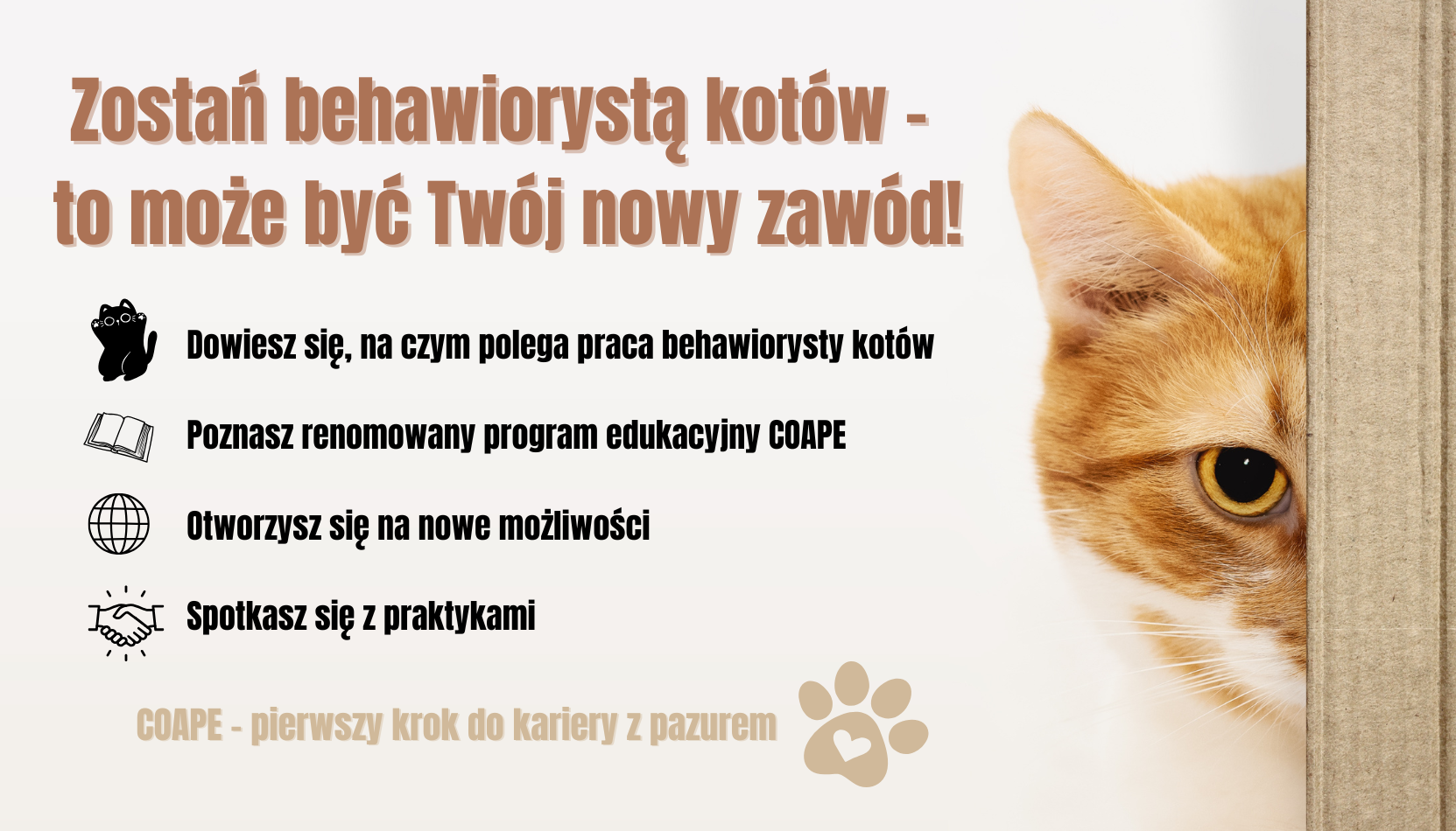 Poznaj COAPE Polska - Otwarte spotkanie online na temat zawodu behawiorysty kotów oraz kształcenia behawiorystów kotów w COAPE - nagranie